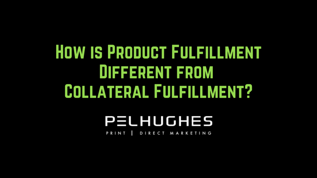 Product fulfillment and collateral fulfillment involves the storage and distribution of different types of items. Collateral fulfilment refers to the warehousing and distribution of print materials used in marketing such as direct mail pieces, brochures, and signage. Product fulfillment, on the other hand, refers to the storage and distribution of consumer goods like t-shirts, water bottles, and other promotional items.
