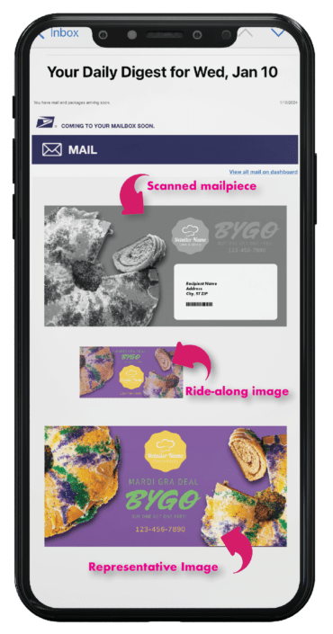 Interactive Campaigns: Direct marketers can enhance their physical mail pieces by incorporating interactive elements. Users can click on digital content, such as ads or links, directly from the Informed Delivery email or app.